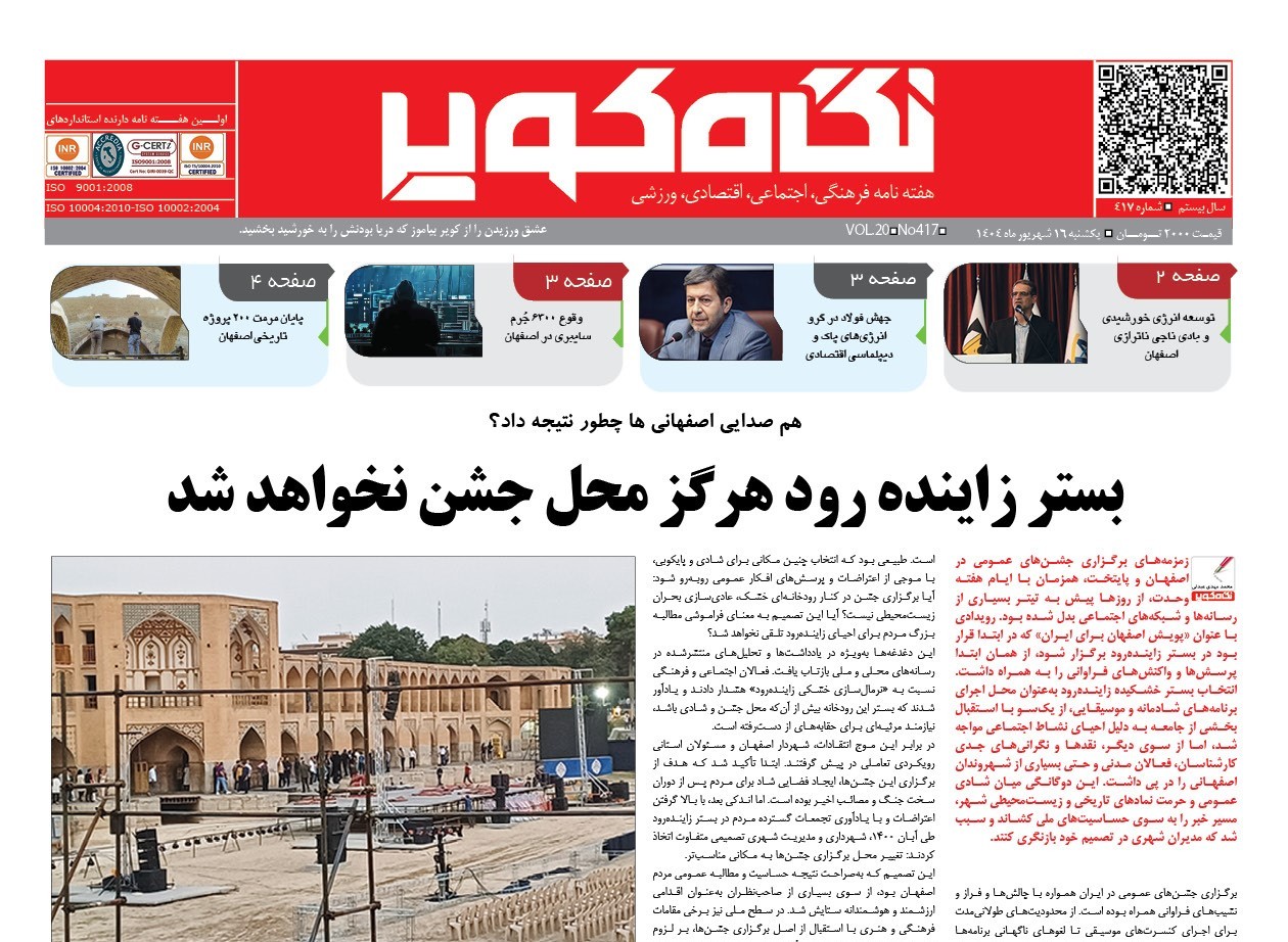 هفته نامه نگاه کویر شماره 417 منتشر شد
