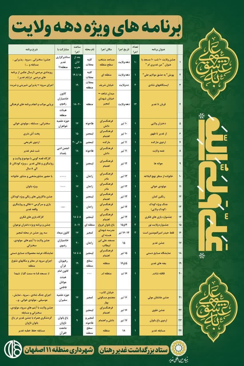 اجرای ۲۴ عنوان برنامه ویژه دهه ولایت در منطقه ۱۱ اصفهان